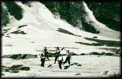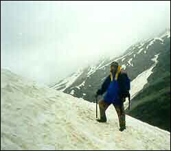 I stood at the edge of the glacier fearing the worst. I sighted Andy on a large ledge, about 200 meters below. Abseiling down, I reached Andy. He was in intense agony. The fall was bad though he managed to slide a good distance off the near vertical edge with friction. He was conscious but the fall had been hard on his legs....his knees were in a miserable state. I don't mean to glorify dangerous living. But tell me, where do you find success without risk ? Risk is more than just the joy of survival. It heightens perceptions and personal abilities. In some cases, it's a way of overcoming personal inadequacy. In most instances, it's mind over matter that has separated glory from failure. After all, the only intrinsic reward is neither value nor fame. It's the profound feeling deep within. Any movement of the joint caused him tremendous pain. That really gave me an idea of how bad it was, because I knew Andy could take pain. Somehow, he had acquired a deep slit above his eyebrow. Having bandaged his open wounds, Andy requested me to fish a cigarette out of his pocket and hold the ignited cigarette to his mouth. A few puffs and he was smiling. I smiled but I knew he couldn't be doing too good. Months went by. His knee was healing slowly, but the physiotherapist regretted that the fall had damaged his knees so badly that using them for climbing again would be impossible. His knees would remain a weak link. Inclines were no longer possible for him to manoeuver. Andy has been bravely battling his way to recovery. He can now walk on level ground, albeit accompanied by a shooting pain in his knees. Climbing again is still a dream that remains. For any climber, the most painful truth to accept is that the passion for mountaineering can only be relived in memories.