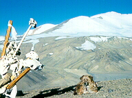 Now had another tough lady - Kara, the dog who had accompanied us since North Pulu beyond Khardungla. All attempts to dissuade her had failed. She was determined to be part of our team. Our first destination was Turtaylak which we reached after climbing 36 bends and crossing the Tulung Putila (3,595 m). This trail was built by Ali Hussain in 1646. One admires his architectural skill and knowledge as one gains height towards the pass. The trek In the Himalayan Journal (Vol. 37 page 118) Amir Ali writes, "It is not just in recent years that the pass has been frequently used. It has always been a highway for people and traders from the North coming down through the Karakorams to gentler and more fertile climes. The Yarkandis used this route for trade and for going on Haj to Mecca. We had been told by just about everyone that the route would be strewed with bones of animals - perhaps men - who had perished in the cold. But it was quite astonishing to see the quantities of these bones. There were piles At Saser Brangza the soldiers and occupants of the army camps were quite flabbergasted to see women suddenly descending down on them as it were! Their words of praise and encouragement touched us deeply. Our next stage was to cross the river Shyok. Known as the river of death, its murky black waters can bring a chill to the heart as much as its swift icy waters can chill your body. The horses plunged in swimming expertly but we took the aerial route on the Garari. Delicate flowers were blooming despite the hot dry stony surroundings. Karakoram is a geologist's paradise. We had distant views of Chom Kumdan. A blue glacial pool en route made one believe that Mother earth had bedecked herself with a huge turquoise pendant. Following the nullah route, we had to cross the river some 28 times before we finally climbed up to Chong Tash. Here we found that vehicles were plying between Chong Tash and Murgo providing supplies to the troops. The vehicles had been assembled here. Even in this remote region the army functioned with clockwork orderliness. We, however, walked on. Angchuk, one of the soldiers we met was walking to his six monthly post to one of the camps. His cheerful enthusiasm and smiling face made a lasting impression on me. We climbed up Track Junction at 17,600 ft is one of the highest camps run by the army. Our goal was now very close. If only the weather would hold out for a day or two. Leaving camp early at 5.30 am we climbed steadily. A dream had come true. At 6.45 a.m. holding hands we walked the last few meters to the Karakoram Pass (5,638 m). We had done it. Three of us, accompanied by Jean, Kara and Norbu stood atop the roof of the world. We took photographs, walked into the Chinese side and picked a few stones as mementos. At 9.30 we began retracing our steps. It was time to make the journey back home. We still had to battle inclement weather as dark clouds hovered menacingly on both sides of the Karakoram pass. I realised what we One odyssey had ended but I felt somewhere a real journey in life had just begun for me. For the record, we had achieved the distinction of crossing 39 passes above 3,000 m., 12 passes above 2,000 m. and had trekked approximately 4,500 kilometers in 198 days. The real treasures could never be tangibly counted. My life had been enriched by the natural beauty and treasures of the mountains, the people I had met and my own personal experiences of human relationships.