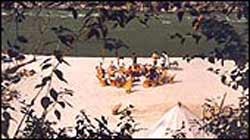 We reached the camp in time for lunch and a long afternoon basking in the sun by the aquamarine waters of the Ganga. The fine silver sands along the extended river bank are amidst a picturesque setting of some 20-25 2-man tents, in an otherwise uninhabited area. A little way off, a bridge across the Ganga leads to the village of Malakhunti.