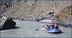 Sitting in the safe-spot in front, having elected to enjoy the ride rather than paddle furiously, I had the best possible view of the river and the oncoming rapids, with a non-stop commentary from Rathi, who kept me well attuned to what to expect and what to enjoy most about each rapid. It was the most delightful introduction to rafting. Compared to an earlier rafting experience on the Trishuli in Nepal, which had left me shell-shocked and river-shy, this time round, I did not feel a moment of fear, and instead found myself in a situation where I could really enjoy the delights of each rapid, safe in the knowledge that I was with river-running pros who were adept at handling different situations. I was also well aware that the safety equipment and precautions were of internationally accepted quality, something which cannot be taken for granted in rafting trips in these parts of the world. Roller Coaster, the longest rapid of the day, was a series of grade 3 and 3 plus rapids, Without doubt, Golf Course, another 3 plus, with it's preceding tee-off, 9 holes and the subsequent club house could not have been named more imaginatively. I had to agree with Rathi that it was visually the most spectacular rapid of the day, and the one I enjoyed the most.