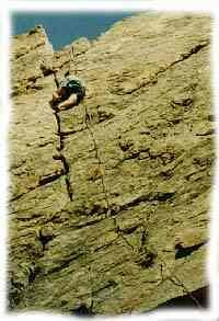 An overhang is an outcrop jutting out of the wall surface. Leaning beyond 90 degrees, an overhang loves to throw away climbers off its surface. It's the most challenging manoeuver for a rock climber. This was going to be the ultimate test of my determination, courage, strength and skill. This move would separate glory from failure. This was the pivotal moment. There would be no second chance if I slipped. This is what I had been training for. I It was no time to weigh the odds. I knew about my abilities.I was very good at reading surfaces. The ledge did give me an opportunity to hold on and gather some energy. I was going to need it. Dipping my hands into my chalk bag, I reached for the first jug hold I could find. I was now with all four limbs on the rock. I moved a little upward. The next move saw me sway in the air, as I remained hanging clutching the cliff with my hands. I was like a pendulum, but facing a huge exposure. The next move was make or break. I had to pull the entire weight of my body with my hands and make a quick grasp for another hold over the outcrop with one of my hands. I was screaming aloud, psyching myself. With one loud shout, I gave it all I had, to make the move that I am still proud of. There was a struggle. I spent too much time fishing for an appropriate hold. I got 'over cautious'.... I came face to face with fear. In the end, victory was to the credit of my mental strength, because the demon had been trampled. Carefully concentrating on every move, I was coming closer to the magical top. It wasn't difficult except for the loose rocks that were in abundance in this stretch. The holds seemed deceptively easy but I wasn't going to 'fall' for it. Can't have myself hang on to a hold that simply decides its time to loosen up ! I had to test every hold before trusting it. The climb slowed down and it was tenacious progress. I was a few good moves away from the top. Sometimes the anxiety of coming close to the summit, can cause the climber to make that one false move of his climb and he fails just two moves from the summit. For me, it was one move at a time. I was panting and grunting. The sounds of agony were quite audible even 190 feet below, at least according to Jitesh and Amit, who had developed sore necks, craning to look up. It was now time to do the mantle shelf move which would bring me to the top of my world. In the next moment, I raised myself on the platform of Balasari and just dropped myself on the ground. The mean and mighty Balasari had been climbed ! I was ecstatic. I had done it. Kneeling down with hands over my face, I was laughing, crying and screaming. Whatever happened to the exhaustion, thirst, painful fingers ? It was an emotional moment in my life. I was a winner. I was an achiever. I had used my strengths, challenged my weaknesses. It was more than just the triumph of a climb, it was the triumph of the spirit. I spent hours in intense training everyday. There was tremendous dedication and sacrifice to achieve a good level of physical conditioning. But that had very little to do with the climbing accomplishment. The battle was purely a mental effort. The mental strength, the intense concentration, the belief, the desire, the determination, the driving force, the relentless pursuit, the courage - it was mind over matter. It's only your mind that tackles the crucial moments.......moments that decide success or failure. And I have never done anything to work towards a stronger mind. If you are doing something you love, focus and concentration comes naturally. Believe it or not, I still can't get myself to read the newspaper ....simply cannot concentrate ! My mother doesn't know much about my climbs except that I coach kids on weekends.....with ropes, of course.