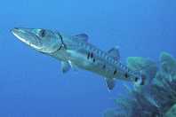 Most of us will recognise a barracuda instantly, but nevertheless look out for long, slender shapes with small scales, a large mouth with a sharp set of fangs, and a protruding lower jaw. The tail fin is forked, and the two dorsal fins are widely separated.