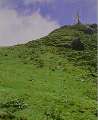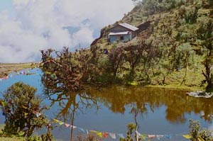 Next morning we had to move down to Gairibas (2800 m), a check post on the Nepal India border. After that was the sheer uphill climb to Kayakata, where we reached at 10 am, had tea and headed towards Kalpokhari. The team divided as the path did, one went around the cliff and another over it. The view from the top of the cliff was rewarding, even if the climb was arduous.