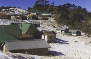 At noon after lunch we had to cross a cliff to reach e deserted village, Sabargram. While ascending from the cliff, I slipped on a long strip of ice and fell 20ft . Fortunately there was no bolder or rock and I only sustained minor injuries. It was around 2 pm and we still had to trek 10 km before dark, so there was no time to nurse my wounds and fallen pride. The next 6-7 km was more or less even, with the last 3 km of incline to be negotiated in foggy weather with a visibility of 2-3 meters. Wind at very high speed made it extremely difficult to ascend, but without a choice, we braved on towards the safety of a trekkers' hut. It was a relief to reach the snow covered stone-paved hut. The snow had to be melted on a wood fire for drinking, which left a typical aftertaste of burning wood.