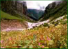 ![]() The next day at dawn we were off! We hurtled along serpentine roads with precipitous drops for quite a few hours till we reached Devaprayag. The first major Prayag, or confluence. It was here that the Bhagirathi and the Alaknanda came together to form the Ganga. We followed the Alaknanda and went through Rudraprayag (famous for Jim Corbett's exploits described in the "Man Eating Leopard of Rudraprayag"), Karna Prayag (confluence of Pindar and Alaknanda), Nandaprayag (confluence of Nandakini and Alaknanda) until we reached Pipalkoti. Everything was perfect. The weather was great, the sceneries were awe-inspiring and my companions were fun. Things seemed too good to last. Sure enough, at Pipalkoti we were informed that we couldn't reach our objective of Govindghat thanks to a landslide. We were lucky to be able to find some accommodation in a GMVN rest-house at Pipalkoti. The next day, our most demanding, would require all the mental and physical resources that we could muster. Landslide! The trek from Govindghat (alt 1,828 mts) to Ghangria (alt 3,048 mts) was one of the most popular treks of the whole journey. This is the same route that pilgrims take to go to Hemkund Saheb and because of this, there are ample villages en route from where one can buy food and water. Horses can also be rented but for those who want the freedom to just stand and appreciate the grandeur of the Himalayas, horses are definitely taboo. Horse droppings combined with drizzling rain made the path slippery and treacherous and it was dark before we could see the lights of Ghangria from a distance. En route, we were helped by numerous friendly Garhwalis who helped us to take short-cuts in the dark without which we would perhaps have had to suffer considerable hardship. The Valley of Flowers As this was a protected National Park, there are no villages in the valley and neighbouring villagers aren't allowed to graze their cattle here. This undoubtedly helps to keep the valley pristinely clean but this policy also has its drawbacks. Weeds, which previously used to be controlled by the goats, have recently become a problem. But nothing can retract from the sublime beauty of the Valley of Flowers. As I sat amongst plants about five or six feet tall and listened to the sounds of silence, I experienced a kind of ecstasy that city dwellers usually don't get to appreciate. The bountiful wild flowers, spread like carpets, with their myriad intoxicating smells cast a spell on me that was difficult to ward off and it was only the advent of rains in the afternoon that prompted me to start my return journey. Hemkund Saheb The scenery is exquisite with the clouds playing games and constantly changing the whole scenery every few minutes. One can stand for hours and appreciate the visual feast for hours as the first peak comes into view and then gets covered by clouds only to reveal yet another one. It is the ultimate natural slide show that leaves one mesmerized. The last half a kilometer is home to the elusive Brahmo Komol. This flower, which is perhaps the only Komol (lotus) to grow on land, features prominently in Hindu scriptures and grows in the wild only in high altitudes. Badrinath and Mana All along the trip to Badrinath, the Alaknanda river flowing below in a deep gorge kept us company. It was one of the most scenic stretches of our trip and it was a pity that we took a bus as it didn't leave us with much time to stand and stare at nature's bounties. Finally we reached Badrinath, which because of it's importance as a site of Hindu pilgrimage is a very modern town. With bustling shops and restaurants, Badrinath was quite different from our experiences of the previous few days. The ubiquitous pay-phone booths helped me to get back in touch with my family after a hiatus of four days. Neelkantha