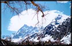 Gwaldam(1,829 m) - Debal (1,218m, 12 km)- Mundoli (2,100 m, 8 km) - Wan (2,400 m, 8km) - Bedini (3,354 m, 10 km)- Bhagwabasa (4,000 m, 9 km) - Roopkund (5, 029 m, 5 km) - Jyuragoti (5,000 m, 2 km) - Shila Samudra (3,658 m, 8 km) - Homkund (4,000 m, 5 km) - Sutole (9km ) - Ghat (26 km) - Nandprayag (19 km). This trek to the mysterious Roopkund, is memorable. Is was at Roopkund lake that a large number of human bones were found and anthropologists are still working on its significance. Once visited by Lord Curzon, then viceroy of India, the route was named Curzon Road after him. There is a forest rest house, tourist bungalow and dharamshalas at Debal, and tourist bungalows at Mundoli and Wan, which is also the last village on the route. Bedini, with its beautiful meadows, has a forest rest house and snow huts and a cave where one can take shelter. Beyond that, tents required for purposes of camping. Ghat is a roadhead, with a PWD inspection house, and buses are available from here to Nandprayag.