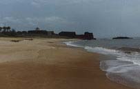 The curved Nagoa beach is one of the many great beaches on the west coast of India. The beach is located in the Nagoa hamlet, in Burcharwada village, and is a short 20 minute drive from Diu. There are other beaches named Jallandhar, Chakratirth and Sunset Point. Getting there: Diu: The nearest railhead is Delwada, about 8 kms from Diu. From Delwada there are trains to Veraval, about 90 km from Diu. Regular bus services are in operation from many places in Gujarat, namely Somnath (80 km), Junagadh ( 164 kms0 Bhavnagar (180 km), Rajkot (200 km) and Daman (600 km). Information courtesy Government of India