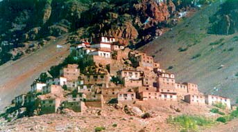 Riba: (2,745 m) Riba just (1 8 km) from Powari on N.H. 22 is famous for its vineyards and local wine "Angoori' that is made from grapes. Jangi: 26 km from Powari, the inner border is located here beyond which foreigners require permits to travel upto Tabo. From this point the famous Kinner Kailash Parikrama Trek starts touching Morang, Thangi and Kunocharang villages and entering Chitkul village in Sangla valley. Puh: (2837 m) Lush green fields, orchards of apricot vineyards and groves of almond trees, are to be seen on the route to Puh. Just 58 km from Powari along the N.H. 22, Puh has rest house and hotel facilities. Namgya: The closest village from Indo-China border, the Shipkila border point is just 13 km from this village Tashigang Gompa: This fine Buddhist Monastery is accessible from Nangya, a little diversion from Khob, located on the N.H. 22, at the confluence of the Satluj and Spiti rivers. Tilasang Monastery: The monastery is close to Koa, 12 km short of Yangthang on the N.H. 22; which has facilities for visitors to stay. Nako: (3,662 m) A little off the N.H. 22 along a link road just short of Yangthang is the scenic village of Nako the largest village in the desolate Hangrang valley. A little lake reflects the stark grandeur of the surroundings hills. Lahaul And Spiti From Nako, one reaches Sumdo, the gateway of Spiti. After crossing villages of Yangthang, Chango and Shaikhar. The exotic land of Lahaul and Spiti is a high attitude cold desert full of river valleys, high passes, snow-capped peaks, icy lakes, mighty glaciers and a tribal country-side dotted with monasteries, yaks and lamas. Spiti with a strong Buddhist tradition also known as little Tibet has nearly 30 monasteries or Gompas strung along the valley with a rich cultural heritage that is very old. Tabo: Tabo is the largest monastery complex of Buddhist religion. This has been declared as a protected monument. In June-July 1996, millennium celebrations of the monastery took place here. It has sculptures, stucco images and wall painting which are similar to the Ajanta-Alora paintings. It is situated on the left bank of Spiti river at an attitude of 3050 m. On the way to Kaza there is a bifurcation to Pin valley which is famous for its wild life and treks and is a National Wild Life Park. The valley lies on both sides of the Pin valley. Dhankar: Dhankar is situated at an altitude of 3870m, and is 23 kms from Tabo. It is one of the main villages of Spiti Valley and the erstwhile capital of Spiti state. This place is famous for it's ancient fort and monastery. Kaza: It is the head quarter of Spiti sub-division and is 47 km from Tabo. It has a Buddhist Monastery, Spiti fair is held here every year in the month of August. There is an HPTDC lodge here.