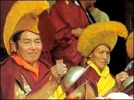 lamas in their religious costumes and the local people in