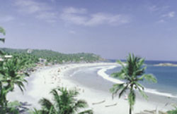 Along the 600 kilometre length of the Kerala coast, there are many sandy beaches, rocky promontories and coconut palms. The fishing village of Kovalam lies 10 kilometres south of Thiruvananthapuram, the capital of Kerala. Kovalam is the only beach resort of Kerala and is very popular with the Indian as well as international tourists. Industry is relatively small scale in this area and the prices low. The beach is just a few minutes walk from the village.