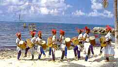 History comes alive in folk ballads that women chant during household chores. Memories of the past - the arrival of Hazrat Ubaidulla in Lakshadweep, the plunder of the islands by the Portuguese, are kept alive by the balladeer. The men have spirited folk dances. Women are modest and dress colourfully. In Minicoy there is a profusion of colour, on houses, furniture and boats. There are many seamen from Minicoy on merchant ships all over the world.