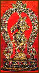 The Ceremony of Dahi-Handi In his childhood, Lord Krishna along with his mates used to raid the houses of his neighbours in search of milk and butter. It is a common practice in India to tie up food articles in a pot suspended from the beams of the roof so as to prevent domestic animals like cats and dogs from despoiling them. We are told that every day after the men and womenfolk left for their farms, the naughty and adventurous Krishna along with a band of his mates would build a human pyramid and plunder the caskets of milk and butter much to the chagrin of the owners. Krishna Lila The story of Lord Krishna reflects life in a pastoral society. Cattle are the principal means of subsistence. The activity of people revolves around tending cows, milking them, making curds, butter etc. Krishna himself has names displaying a pastoral charecter. Govinda and Gopala as he is also known, mean cowherd. In Sanskrit 'go' means cow. Krishna is always shown with his flute (Bansuri). He is considered to be the Hindu God of Music and is the patron god of Indian musicians of the traditional schools (Gharanas), irrespective of their religion. In brief the life story of Krishna according to mythology is as follows: The Cruelty of Kansa Lord Krishna at Gokul At Gokul, under king Nanda's protection, Krishna got the loving affection of Nanda's Queen Yashoda whom Krishna looked upon as a mother. Days passed in fun and frolic, while the child-Krishna grew up. But one day rumours reached Kansa that Devaki's son had somehow escaped his cluthes and was living in Gokul. The Demoness Putana Kalia Mardan and the Lifting of Mt. Govardhan Among other things, he is said to have done at Gokul, he lifted Mount Govardhan to save the people of Gokul from a storm. He also tamed Kalia, a giant snake that lived in the Yamuna river and terrorised the people of Gokul. While still in his teens, Krishna came to Mathura where King Kansa had organised a wrestling tournament. Krishna participated in it and after defeating all the contestants, he challenged Kansa to a wrestling bout. The evil Kansa's time was up: Krishna defeated him and killed him. The people of Mathura were relieved. Another major event in Krishna's later life was that he functioned as an adviser to the Pandavas and during the Mahabharata war between the Pandavas and Kauravas he was Arjuna's (one of the five Pandava brothers) charioteer. The original recitation of the Bhagvad Geeta (Song of the Blessed Lord) is accredited to him. This document contains profound ideas on many issues touching on the temporal and non-temporal aspects of life. |