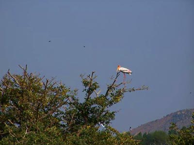 We walked along the bank to see the rest of the sanctuary. There is a watchtower in the sanctuary equipped with a powerful field glass. From the watchtower we had an uninterrupted view of the entire sanctuary. It was breathtaking. The unhindered panoramic view of the wetlands with the numerous islands of shrubs and acacia trees the distant hills touched by the golden rays of the late afternoon sun, the trees and shrubs with hundreds of feathered tenants and their off spring, the cool breeze creating ripples on the water, was mesmeric. Eventually we were compelled to retrace our steps before closing time at 6 pm.