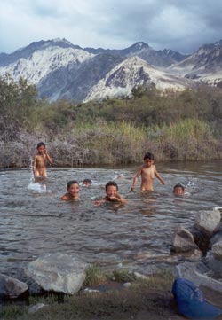 We took the left fork. Over the next few days I stayed with local families and explored the valley on my own, my trusted backpack and camera slung across my back, my worries and moods scattered beyond the Saser glaciers…beyond Turtuk…beyond the mighty Siachen hidden behind the mountains to the north. At Diskit, the little children were a revelation. Five tiny ones emerged from the forest. Prancing around me they led me to their school, introduced me to their teachers and little friends. Their permanently flowing noses would put the Shyok to shame. Later they ran with me to their waterhole, where the clear stream water collected for a while before slipping over the log into the adjoining fields. Here, they stripped naked and jumped into the pool - their innocent laughter reverberating across the valley and right to my soul. Bidding them a fond farewell, I moved in deeper towards the end of the pasture, past farms hidden from sight by tall thorny shrubs. The days came and went. I clung on to each moment, as I hoped against hope with every passing hour that the sun would never set and my long carefree walks would not end. I just didn't want to arrive anywhere. Each day began early and ended well after the village lights would flicker off, one by one. I'd walk out of the room with a blanket wrapped tightly around, gaze at the stars that shone so brightly, seemingly so close and so gently, that I wondered why I searched for my God in a temple when he stared at me all the while from above. And so it went. One hour overlapping the next, one mile extending into another. I hiked to the gompa at Hundar perched high above the bridge with a mesmerizing view of the valley beneath. I saw the monastery at Diskit and the impressive Shamstelling gompa at Sumur, rode across the dunes on the double humped bactrian camel that I hired from Abdul Razzak for a paltry Rs.150, got invited (and later drunk) at the delightfully amateurish Tegar village festival, and devoured the not so tasty 'skiu' and the unpalatable 'khambhir' served by my newfound friends. T. Dorje taught me how easy it is to make friends and how a wonderful friendship can last all of one day. Perched precariously on his Bajaj Chetak, I went all over Panamic village and to his small dwelling where we shared his lunch and his many stories of Ladakh. He walked me to the hot springs, to his workshop where he taught the locals carpentry and introduced me to the locals as 'mera Bambe ka dost.' TI left Sumur early one morning at 6am. I kept my money on a makeshift table in my room and slipped out of the house quietly so as not to wake up my wonderful hosts. I walked over to the village bus stand across the road. For an hour I sat on a culvert watching a remote mountain village wake up to the sounds of a new day. I drifted in and out of moments that made up my days in the valley. The distant drone of an automobile jerked me from my reverie and slowly I stood up, dusted my pants and as the jeep rumbled towards me I stuck my thumb out in the direction of Leh. Snippets for the traveller: